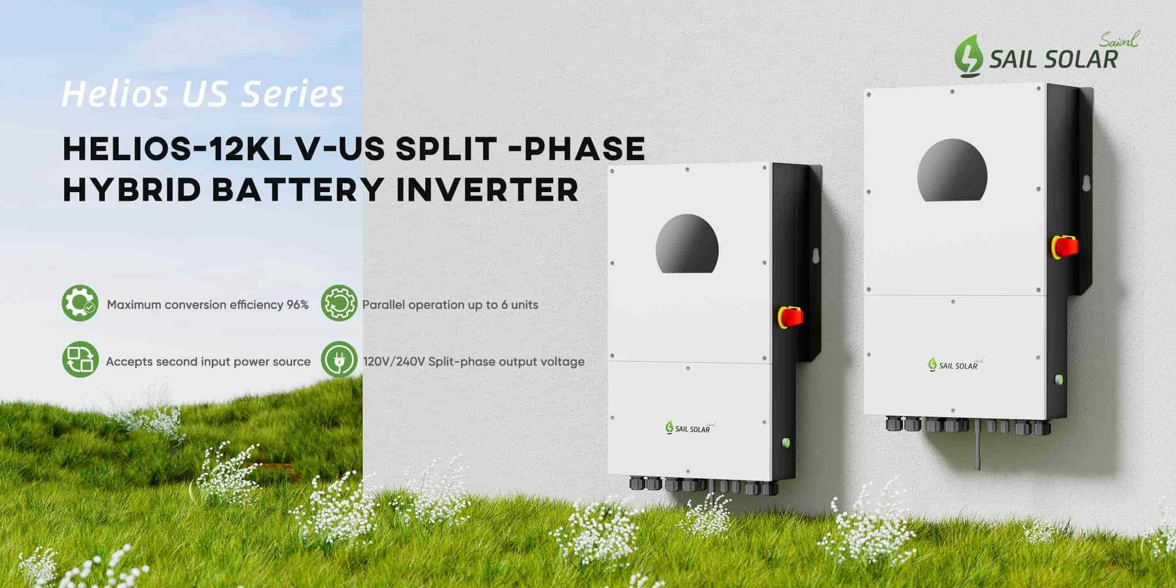 Hybrid AC/DC InverterDas Helios-12KLV-US Split-Phase-Hybrid-Wechselrichter-Energiemanagementsystem unterstützt mehrere Eingangs- und Ausgangsoptionen, darunter Split-Phase 120V/240V und 120V/208V, verfügt über ein Kabelfach mit Tür, ist mit einem eingebauten 300A DC-Leistungsschalter und einem 60A AC-Leistungsschalter ausgestattet, beinhaltet eine integrierte AC-Kopplungsfunktion und WiFi für die mobile Überwachung über eine App, akzeptiert eine zweite Eingangsstromquelle, die mit Generatoren kompatibel ist, verfügt über eine integrierte Lichtbogenfehlererkennung (AFD) und Schnellabschaltung (RSD), bietet einen externen CT-Sensor zur Gewährleistung des 100%igen Eigenverbrauchs, beinhaltet eine integrierte Kommunikationsschnittstelle für BMS (RS485), ermöglicht die Einstellung von Ladestrom und -spannung durch den Benutzer und unterstützt den Parallelbetrieb von bis zu 6 Einheiten.