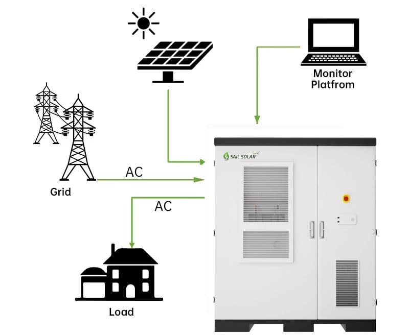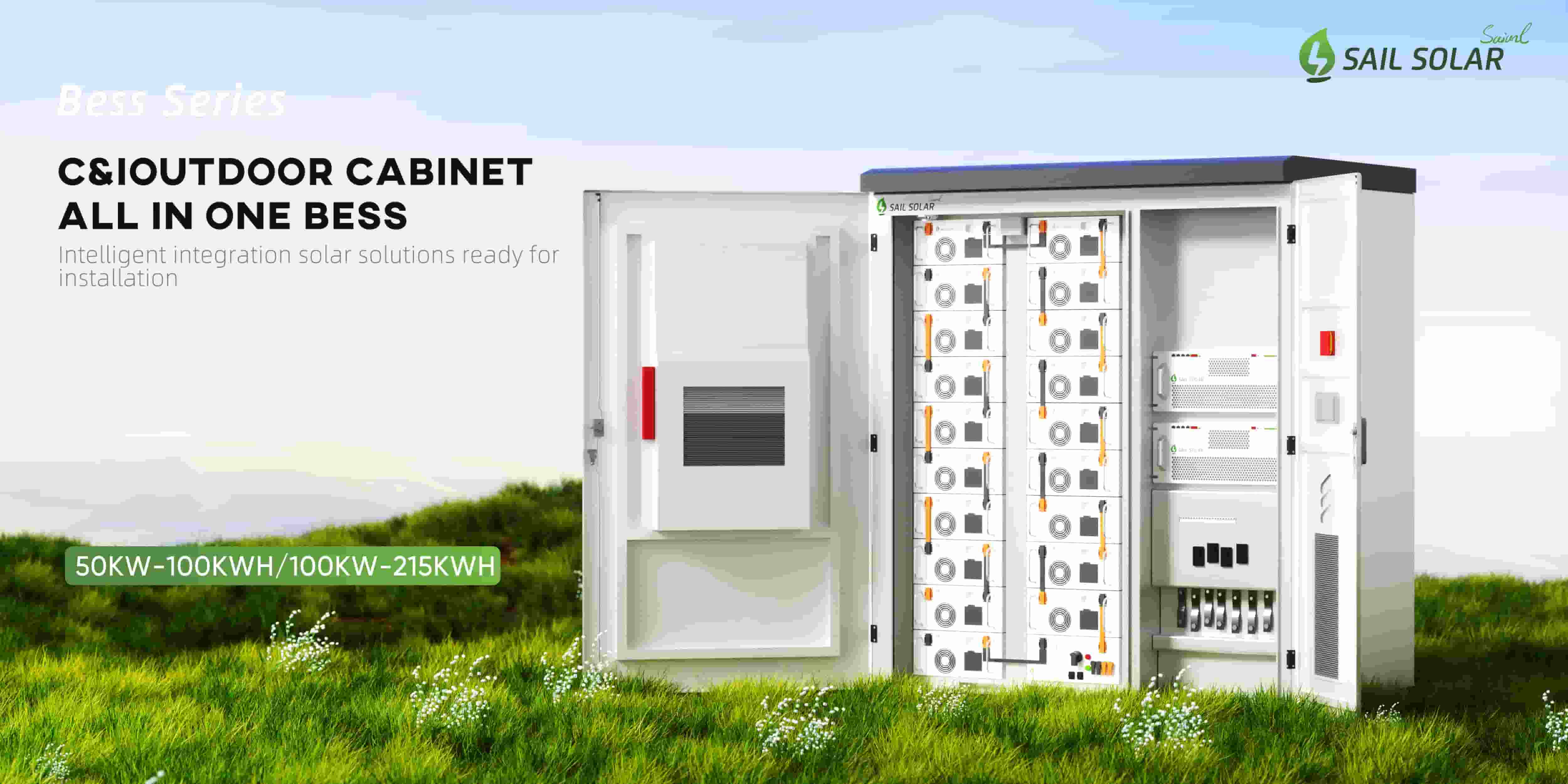 SAS-50kW 100kWh / SAS-100kW 215kWhEs handelt sich um ein integriertes Komplettsystem, bestehend aus einem 100-kWh-LiFePO4-Batteriespeicher mit zweistufigem Batteriemanagementsystem und volldigitalem LCD-Display, einem 50-kW-Solarwechselrichter mit großem Eingangsspannungsbereich und Systemen zur Netzspannungsanpassung sowie einer Lösung für dreiphasige Unsymmetrien. Der nach IP54 geschützte Außenschrank ist mit Luftkühlung, Beleuchtung, Stromverteilung, Brandmeldeanlage und weiterem Zubehör sowie einem Energiemanagementsystem ausgestattet.
