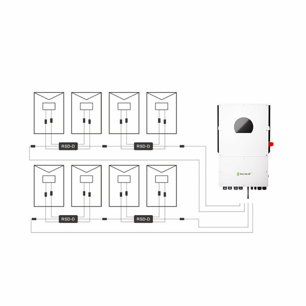 Dieser Wechselrichter verfügt über einen integrierten Schnellabschaltsender. Bei Erkennung eines Notfalls oder einer Störung unterbricht der Wechselrichter die Stromversorgung des Schnellabschaltsenders und stoppt die Wechselstromausgabe. Gleichzeitig wird die Spannung am PV-Leiter innerhalb von 30 Sekunden auf 30 V reduziert. Der Schnellabschaltsender ist nur mit dem Schnellabschaltsender von AP SMART kompatibel.