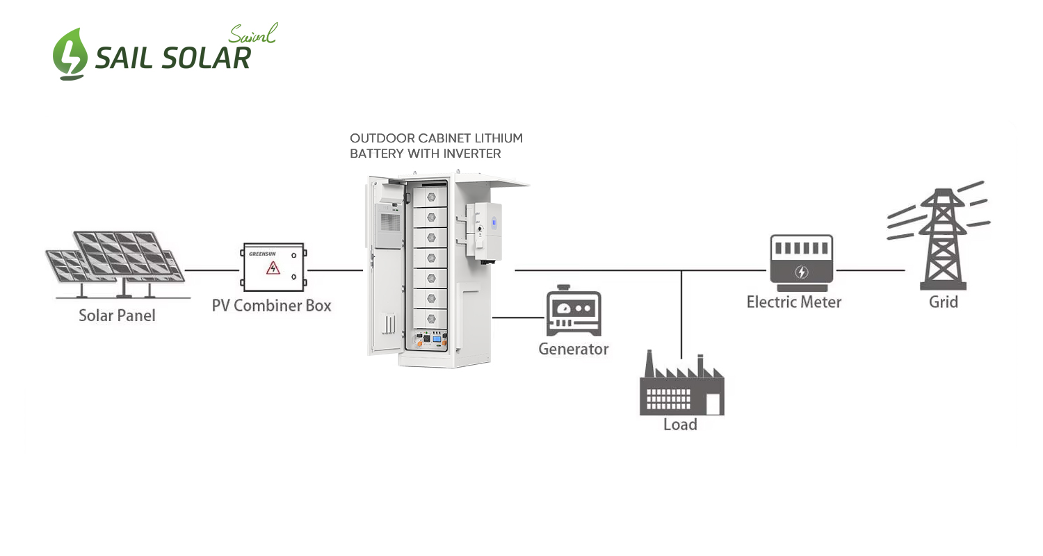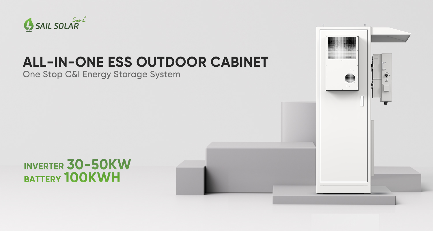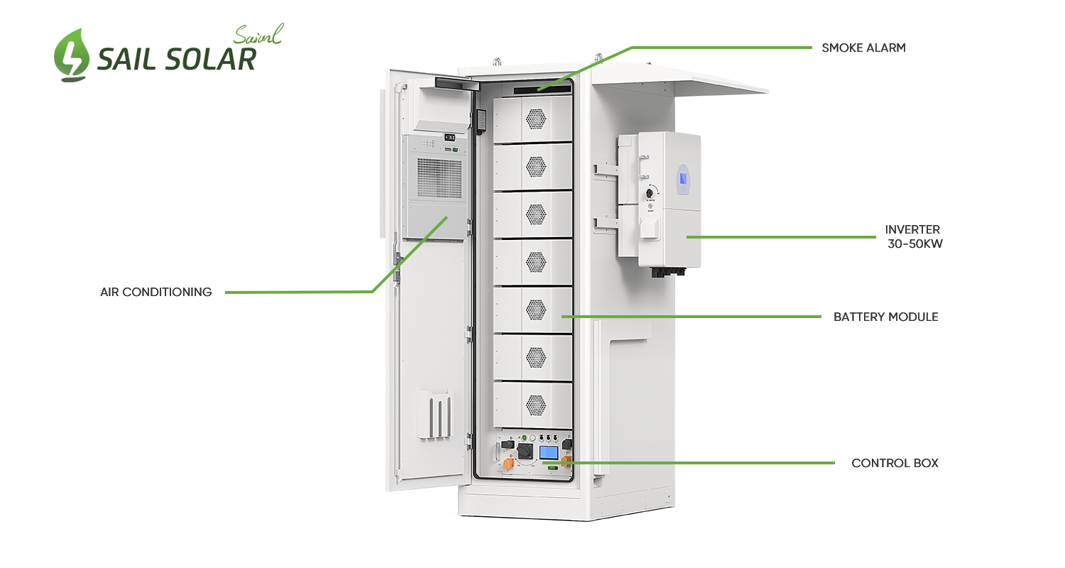 Sail Solar 100-kWh-Lithium-Batteriespeicher mit 30-kW-/50-kW-Solarwechselrichter – All-in-One-Energiespeichersystem für den Außenbereich