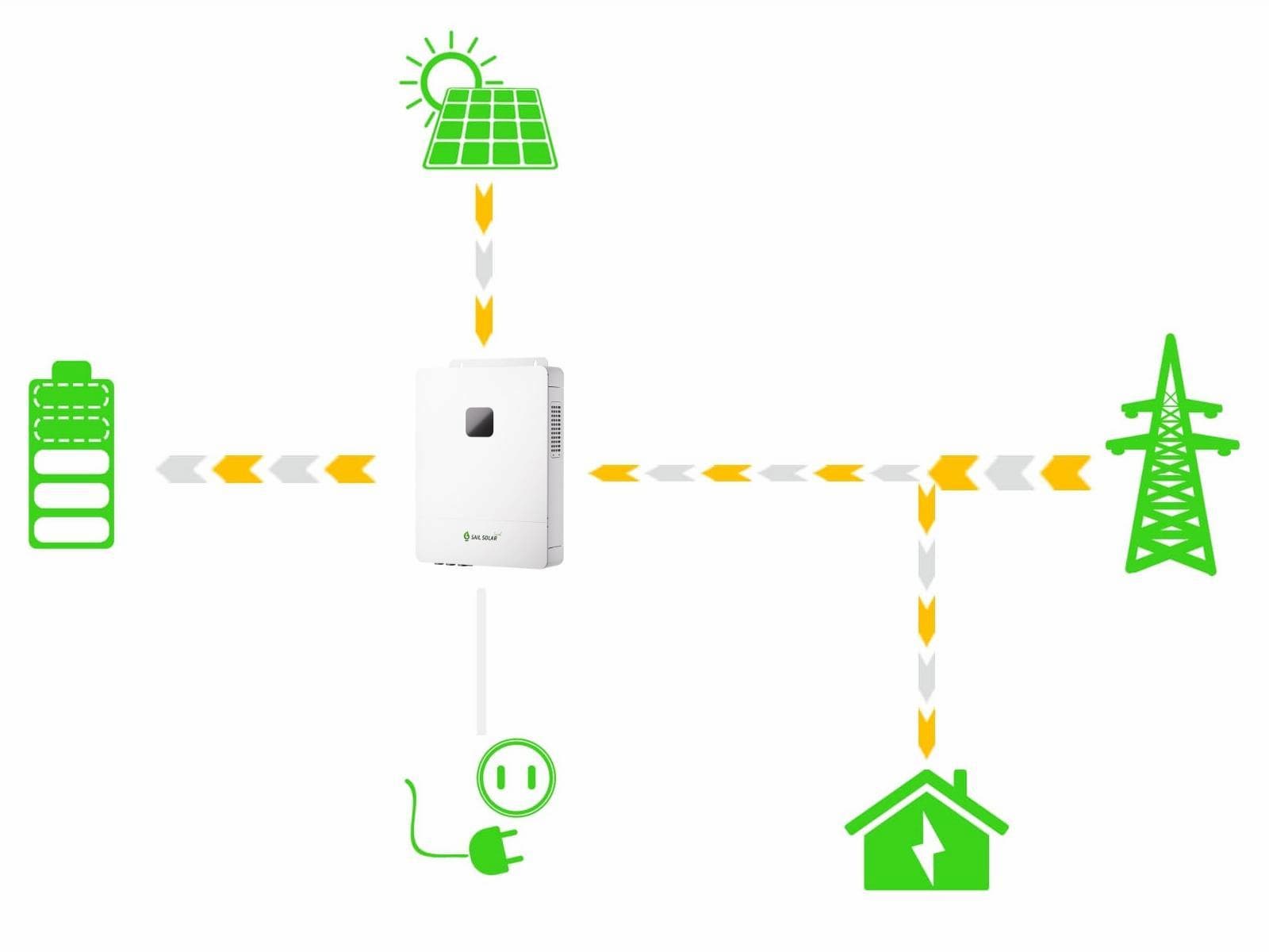 Der 5-kW-Hybrid-Solarwechselrichter wurde für die wachsende Anzahl von Photovoltaikanlagen für Privathaushalte entwickelt. Sein Wirkungsgrad erreicht bis zu 99 %, der Ladestrom bis zu 100 A. Er kann Lasten bis zu 5 kW Gesamtleistung oder 4 PS Motorlasten, wie z. B. Klimaanlagen und Ventilatoren, versorgen. Der Gleichstromausgang wird hauptsächlich von den Photovoltaikmodulen erzeugt, der Wechselstromein- und -ausgang hingegen hauptsächlich vom Stromnetz, das auch von einem Benzin- oder Dieselgenerator gespeist werden kann.